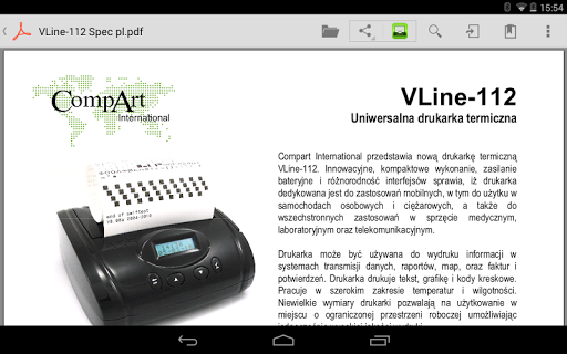 Aplikacja Vline Mobile Print umożliwia wydruk dokumentów PDF oraz plików graficznych na drukarce termicznej VLine-112 firmy CompArt International.