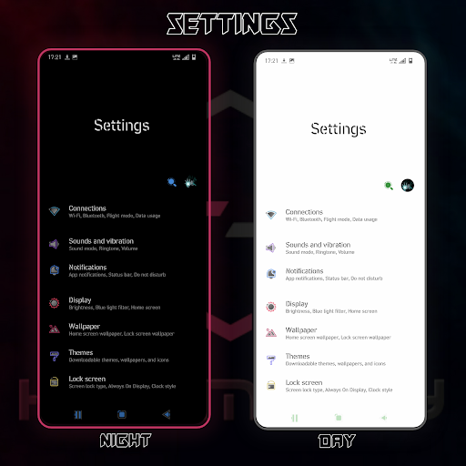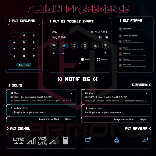 This plugin offers: *QuickSetting toggle icons *Settings dashboard icons *UI Component icons *App icons *StatusBar and NavigationBar icons *#hex_pro compatible *One UI 3 support