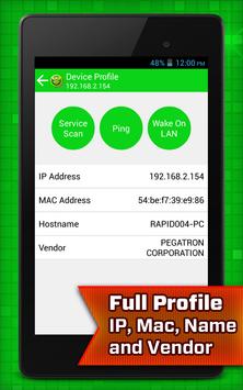 • Display full profile such as device name, manufacturer, IP address and Mac address