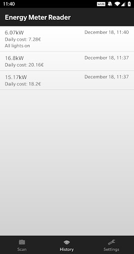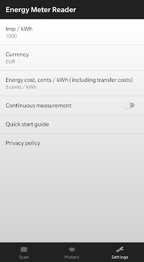 Want to know what is your household's electricity consumption at the moment? Energy Meter Reader application tells it. Electricity consumption is calculated from energy meter's blinking LED light, using your phone's camera. If you have set energy cost per kWh to settings, you also get daily cost of your household's electricity consumption. With Energy Meter Reader application you are able to compare how much electricity consumption changes when different electrical equipment / household lighting are on or off.