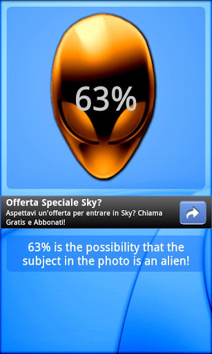 DETERMINE THE POSSIBILITY THAT THE SUBJECT IN THE PHOTO IS AN ALIENDetermine the possibility that the subject in the photo is an alienTake a picture and see the resultSince the late 1970s, extraterrestrials from other habitable planets or parallel dimensions such as quot;Greysquot; and intraterrestrials from Hollow Earth such as quot;Reptiliansquot; have been included in the New World Order conspiracy, in more or less dominant roles, as in the theories put forward by American writer Stan Deyo and Milton William Cooper, and British writer David Icke.ALIENS ARE AMONG USThe common theme in these conspiracy theories is that aliens have been among us for decades, centuries or millennia, but a government coverup enforced by Men in Black has shielded the public from knowledge of a secret alien invasion. Motivated by speciesism and imperialism, these aliens have been and are secretly manipulating developments and changes in human society in order to more efficiently control and exploit human beings. In some theories, alien infiltrators have shapeshifted into human form and move freely throughout human society, even to the point of taking control of command positions in governmental, corporate, and religious institutions, and are now in the final stages of their plan to take over the world. A mythical covert government agency of the United States codenamed Majestic 12 is often imagined to be the shadow government which collaborates with the alien occupation and permits alien abductions, in exchange for assistance in the development and testing of military quot;flying saucersquot; at Area 51, in order for U.S. armed forces to achieve fullspectrum dominance.