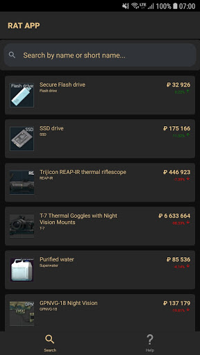 First release of Rat app - Escape from Tarkov! Search through all items and find the Flea Market prices and more!
