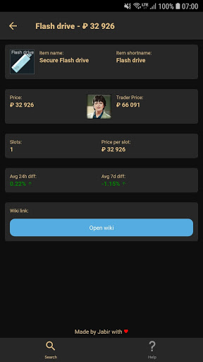 Ta aplikacja pozwala wyszukiwać wszystkie ucieczkę z przedmiotów Tarkov i sprawdzić ceny pchli.Ta aplikacja jest szybka i czysta.Bez oszczędzania lub buforowania niczego na urządzeniu.