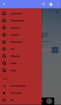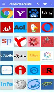 Here You can use major Web search engines like Google Yahoo Baidu Bing Ask Aol DuckDuckGo İxquick StartPage Yandex WolframAlpha Webcrawler Dogpile Excite Alphea Goodsearch Mywebsearch İnfospace Contento Boardreader İnfo Wikipedia İnside Yippy and more.. with a Simple app You can Search more than 24 Most using search Engines using a Single Application.