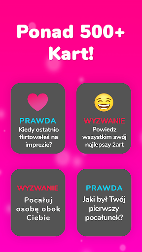 Prawda czy wyzwanie? Ta gra jest idealna na imprezy, randki lub po prostu do przełamania lodów. Z pewnością dostarczy Ci niesamowitej ilości zabawy! Nasza gra jest przeznaczona dla nastolatków, dorosłych i par, więc jest idealna na epicką imprezę lub niegrzeczną noc jako para. Zaprojektowaliśmy ją specjalnie do grania razem z przyjaciółmi, więc czeka Cię niezapomniana noc!