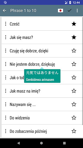 Dzięki tej aplikacji powyższe sytuacje zostaną rozwiązane. Jest to japoński słownik, który zbiera najpopularniejsze codzienne japońskie frazy. Pomóż bardziej pewnie w podstawowej komunikacji z Japończykami.