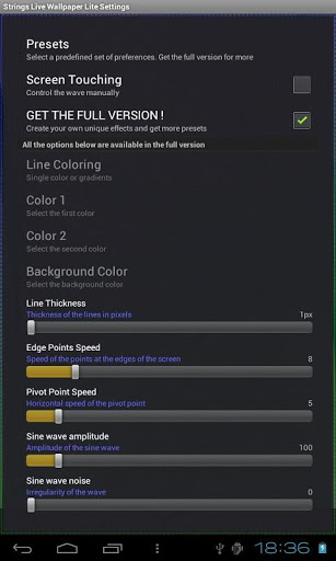 Strings is a beautiful abstract live wallpaper featuring colorful animated lines filling your screen with sine wave patterns.