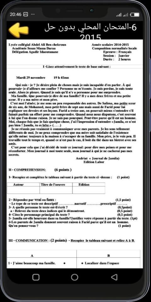امتحانات محلية للسنة الثالثة اعدادي الفرنسية مع التصحيح