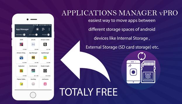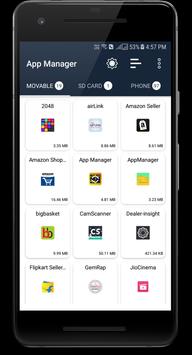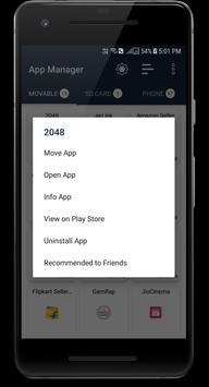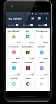 App Manager (Move To SD) is made for manages apps storage in device. App Manager is come with the easiest way to move apps between different storage spaces of android devices like Internal Storage , External Storage (SD card storage) etc.