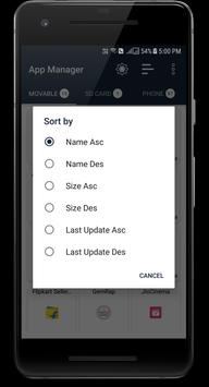 • Sorting Apps : App Manager provide sorting functionality to help users to sort and manage apps.