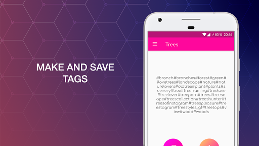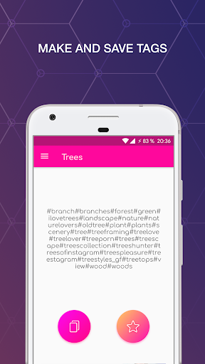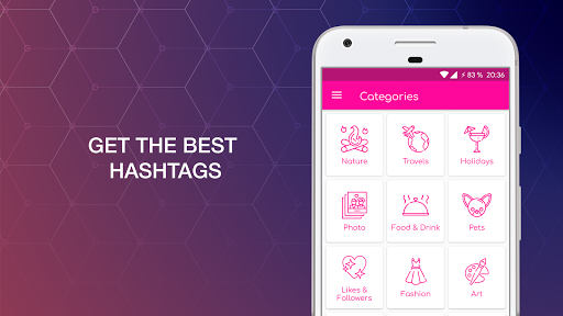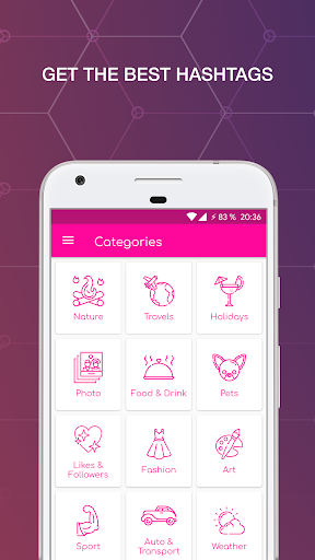Top tags for social networks, which you will find in the application, are divided into thematic categories for your convenience: