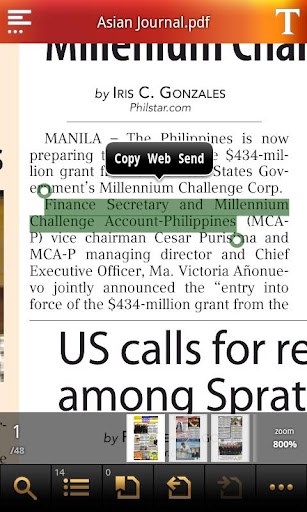 - możliwość wyboru tekstu w PDF, Zapisz w schowku, Web Search, Udostępnij z innymi aplikacjami