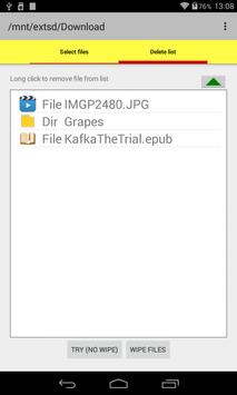 Normally, when you delete a file, its name is removed from the directory listing and its disk space is made available for other files. The data remains intact on the disk and can be recovered quite easily. Confidential data, that you think has been deleted, is actually still there. This app overwrites the contents of files with random data before deleting it. You can optionally specify that files should also be overwritten with zeroes and that multiple passes of random and zero wipes be performed.
