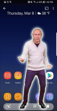 Do you want to cheer up your friend? Install dancing Putin on phone and enable Putin dancing animation on his phone desktop! You can choose when Vladimir will appear. He will be dancing on top of other apps, so your friend will be shocked that Putin started dancing!