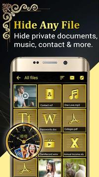 Hide your personal audio, contacts, apk files or any documents safe and secure.