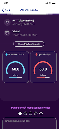 I-Prędkość Odzwierciedla uczciwe pomiar szybkości dostępu do Internetu użytkownika. Dane pomiarowe przyczynią się i wspierają agencje budowlane, rozwój infrastruktury i usługi internetowe w Wietnamie; poprawić jakość usług świadczących usługi internetowe; Ochrona praw użytkownika.