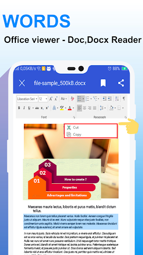 ● Łatwe przeglądanie wszystkich obrazów, tabele, różnych stylów czcionek, kule i więcej dla dowolnych plików DOCX z naszym czytnikiem DOCX