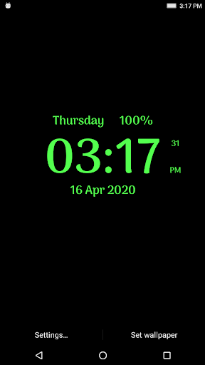 * Tapeta na żywo z zegarem Digi pokazuje aktualny czas za pomocą mrówczanu drugiej lub południa, aktualną datę, dzień tygodnia, procent baterii na wyświetlaczu.