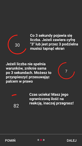 3s'! to gra zręcznościowo-logiczna polegająca na reakcji na liczbę podzielną przez 3 lub zawierającą w sobie cyfrę "3"