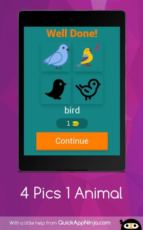Let's play and invite all of your friends and family to enjoy this 4 Pics 1 Animal trivia quiz together.