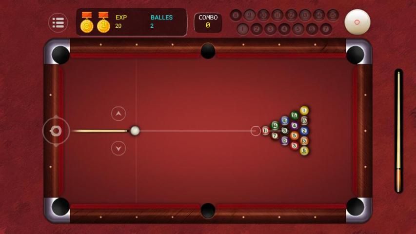 Compete against the artificial intelligence of the computer billiards 8 balls or billiard balls 9. Touch the screen to set the direction and drag the tail down to adjust the shooting power. Touch and hold any point of the screen to move the white ball, and tap to confirm