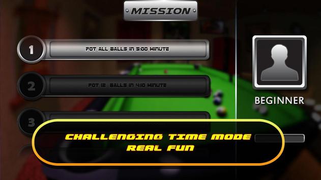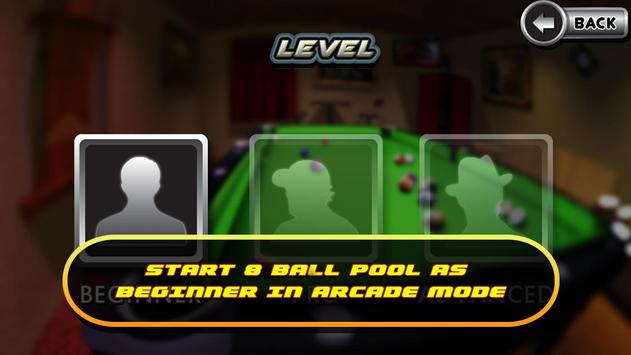 a) Beginner: Easy task to complete and can lead you to the Pro level. 15 easy levels for practicing your hands in 3D pool