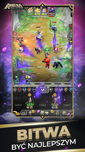 Arena Allstars dostosowuje Twoje ulubione funkcje automatycznej bitwy i poprawia doświadczenia z gry mobilnej na kilka sposobów: (1) szybka akcja i krótsze rundy, (2) ekran orientacji pionowej, (3) większe postacie / ikony i (4) ) zoptymalizowany interfejs użytkownika i elementy sterujące.