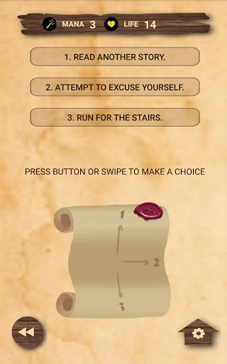 You play a wizard in this interactive novel set in a medieval fantasy world. Stay alive, manage your spell power, find treasure, and smite evil. Wizard's Choice is a series of RPG interactive novels that will engross you in a story while allowing you to make the decisions that will determine your fate.