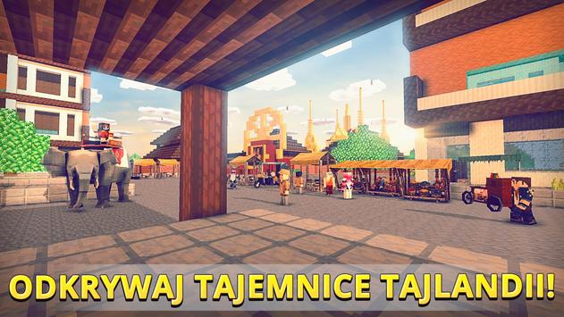 Crafting i budowanie domu i budowanie miasta w Tajlandii to niecodzienne wyzwanie. Ale od czego jest najlepszy craft dla dziewczyn i chłopców? Buduj miasto i dom marzeń. Następnie czeka cię przygoda w starożytnej świątyni - możesz też odwiedzić pływający targ na rzece! Budowanie miasta zaczeka, więc eksploruj otwarty świat sandbox i ciesz się przygodą w stylu majkraft!