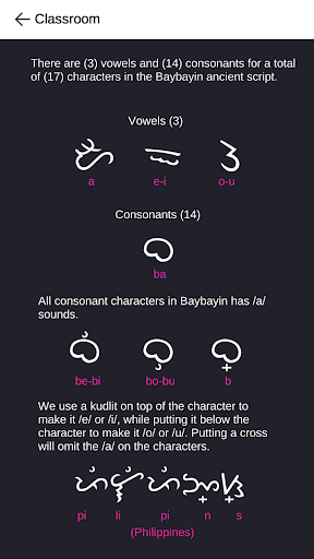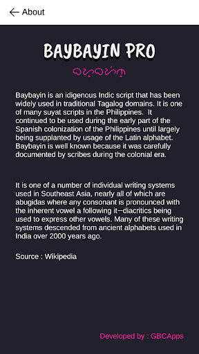 Learn the Baybayin ancient script in this fun and educational game! Baybayin Pro aims to help you learn Baybayin as efficient and fun as possible.