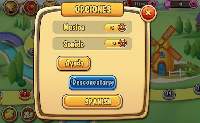Note: You can change the language in the options button