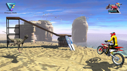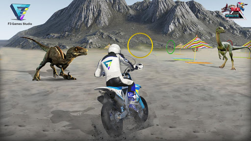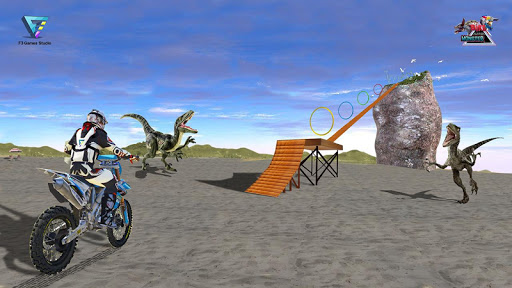 Doświadczać radości skoki motocykl jako moto akrobacje jeźdźca podczas tego offroad symulacji wyścigów rowerów. Pobierz Bike Racing Sim : Dino World i wejdź na planetę dinozaurów.