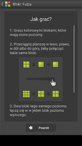 - Dostajesz punkty za każde połączenie bloków. Im wyższy poziom bloków, tym więcej punktów zarobisz.