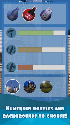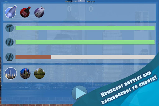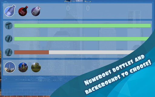 Select the type of bottle that best suits your play style, and try to make it land upright as many times in a row as you can. In the scoreboard, at the top of the game screen, you can check your current number of flips and best record.