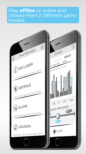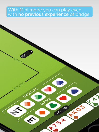 With Mini mode you can play bridge even with no previous experience of bridge! If you love card games this is your chance to try the greatest card game of them all. Mini bridge requires almost no bidding knowledge allowing you to concentrate on taking tricks. With a weekly competition you can compare your results with friends and gradually improve your play. When you ready to try full bridge jump into a normal League competition with rich bidding help you can play and learn.