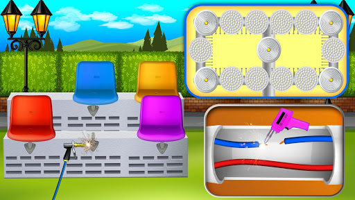 umieść wieże oświetleniowe z gry o budowie stadionu po czterech stronach parku sportowego z szalonymi umiejętnościami budowniczymi i mechanikami. w grach piłkarskich offline działaj jak inżynier elektryk, aby umieścić reflektory na grze o budowie stadionu wieży. połącz przewody odpowiednią kombinacją, aby rozświetlić cały stadion piłkarski. Gry o budowaniu stadionów piłkarskich zawierają czynności związane z naprawą, budowaniem, projektowaniem i dekorowaniem, które zapewnią Ci rozrywkę na każdym poziomie piłkarskich gier menedżerskich. teraz pobierz tę grę polegającą na budowaniu stadionu sportowego i baw się dobrze podczas gier sportowych.