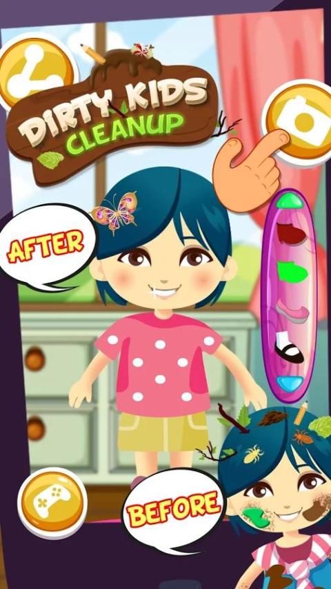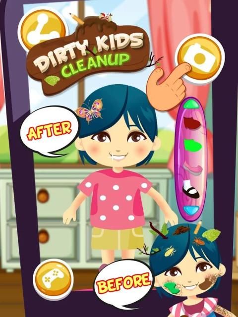 Choose from different kids to wash, dress up, and give a makeover to the little dirty kids who have been playing in the dirt and rain.