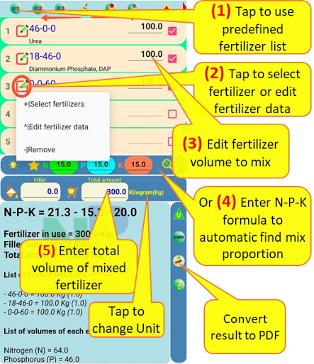 Jeśli masz już jakieś nawozy i poszukiwane Aby je wymieszać, aby uzyskać nową formułę nawozów, ta aplikacja pomoże to tym obliczeniom.