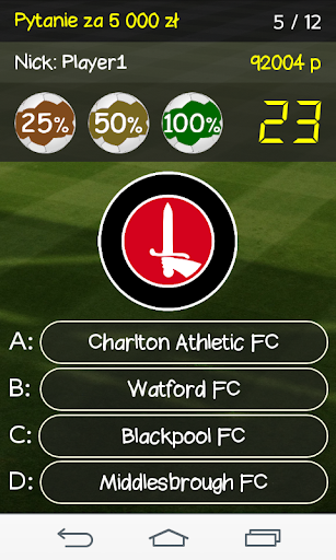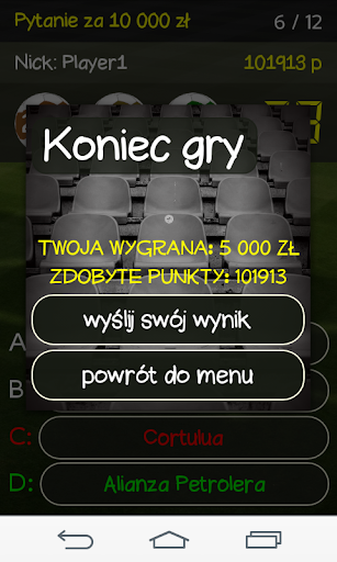 - Wykorzystanie koła ratunkowego 50% = odjęcie 50 000 pkt