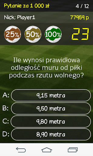 - Wykorzystanie koła ratunkowego 25% = odjęcie 25 000 pkt
