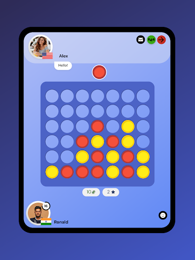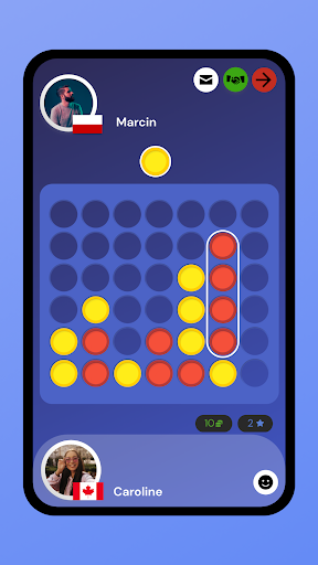 Masz ochotę zagrać w gry planszowe online i zdobyć punkty? Zapewniamy Ci ochronę — zagraj w tę strategiczną grę online 1 na 1 przeciwko graczom z całego świata, którzy również próbują połączyć cztery z rzędu. Ciesz się grami wieloosobowymi online ze znajomymi lub graczami z całego świata. Zostań częścią społeczności, wysyłaj przeciwnikom emotikony podczas gry planszowej, połącz cztery z rzędu, awansuj i osiągnij wynik. Logowanie nie jest konieczne. Wszystko, co musisz zrobić, to pobrać aplikację i już możesz trenować swój mózg za pomocą gier strategicznych - graj w gry wieloosobowe ze znajomymi i graczami z całego świata, którzy również próbują łączyć kropki i kwadraty.