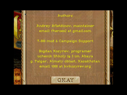 Heroes2 Free (T-800 mod) jest aktualne moditication open source fheroes2 silnika. Najważniejsze w nim jest wsparcie kampanii! Do tej pory suports 3 kampanie - 2 oryginalne kampanie i jeden nowy T-800.