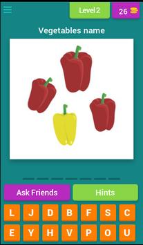 An action packed trivia game involving guessing fruit and vegetables based on illustrations or images.