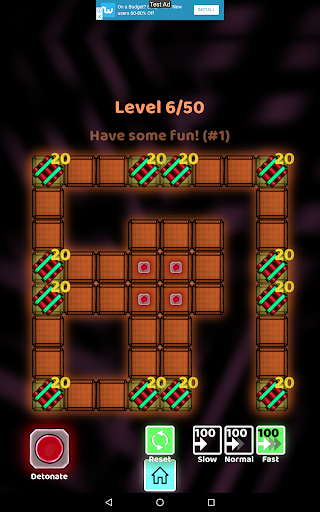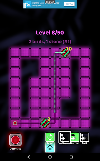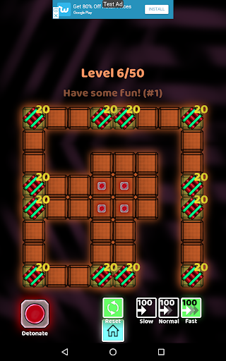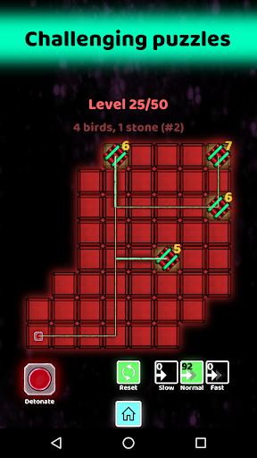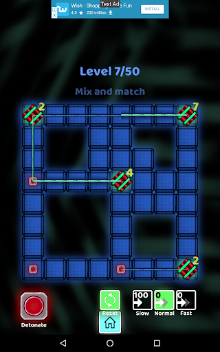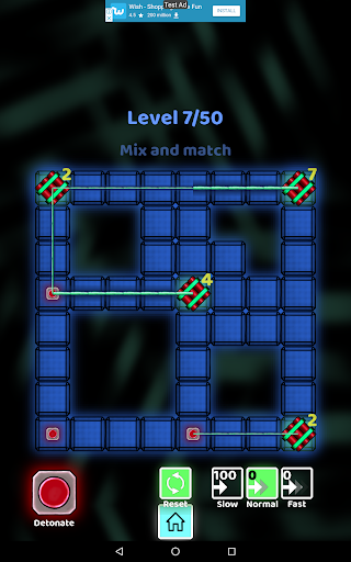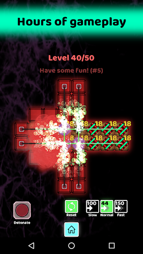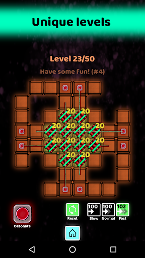 The motivation of this game is to think logically. The key is to understand and assess which fuse (slow, normal, fast) to use to connect each bomb to the detonator. How competent are you in assessing time? Develop your critical thinking skills with logic puzzles involving fuses and bombs. Find an effective strategy to finish this logic puzzle game.