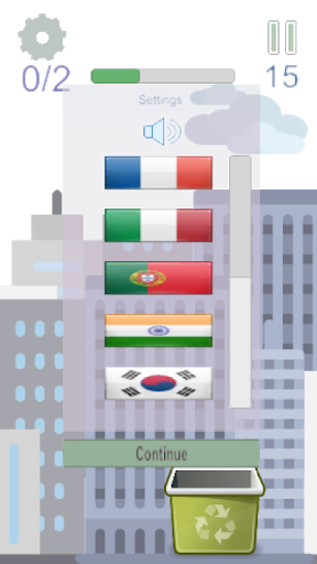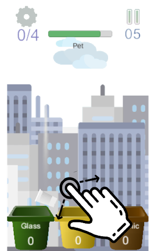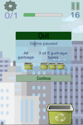 Spadające śmieci należy przekierować w koszu.Istnieją 2 tryby z jednym koszem dla wszystkich typów śmieci i 3 z 5 typów.Gra Symulacja odpadów i zbierania śmieci.Jeśli chcesz uzyskać nową kombinację 3 typów, stuknij ponownie na pauzie i "3 z 5 typów śmieci".