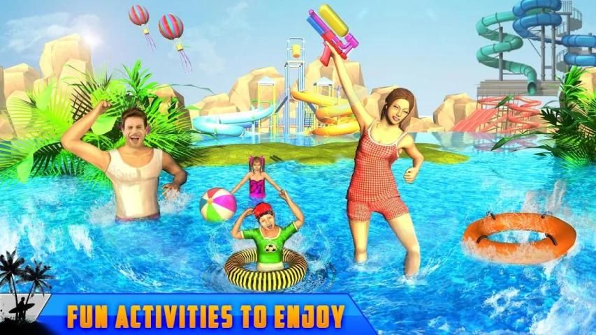 Giant Water Slide Adventure- Water Park Racing Features:
