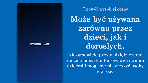 Może być używana zarówno przez dzieci, jak i dorosłych. Niesamowicie prosta, dzięki czemu rodzice mogą konkurować ze swoimi dziećmi i mogą się nią cieszyć osoby starsze.