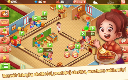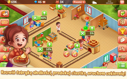 Rozwijaj swoją słodką fabrykę budując i modernizując stanowiska, zatrudniając pracowników i zmniejszając koszta produkcji.