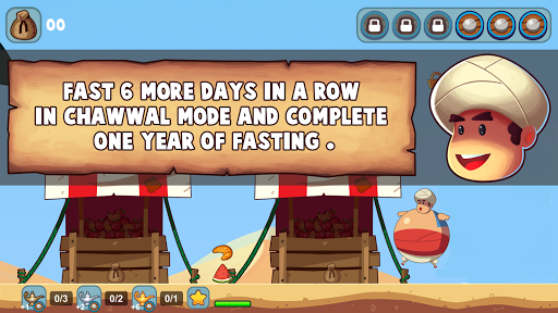 The game is a 2d side scroller game your main goal is to fast the whole day until the night fall . foods are your enemies and will be coming your way to make you break your fast and in order to continue your fasting day you have to avoid them.