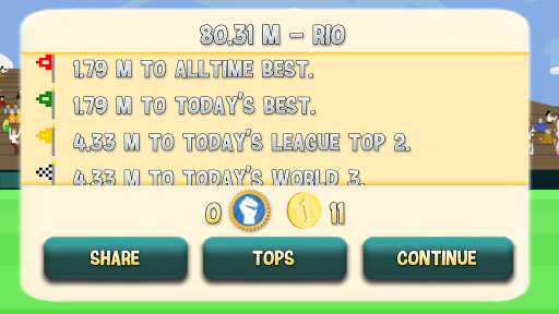 Teraz możesz rzucić oszczepem w Helsinkach, Los Angeles i Rio! Całkowity wynik liczy się w lidze. Zacznij grać już teraz i dowiedz się jak być Javelin Master wraz ze swoim oszczepnikiem! Rzucanie techniczne jest łatwe do nauczenia, ale trudne do opanowania.